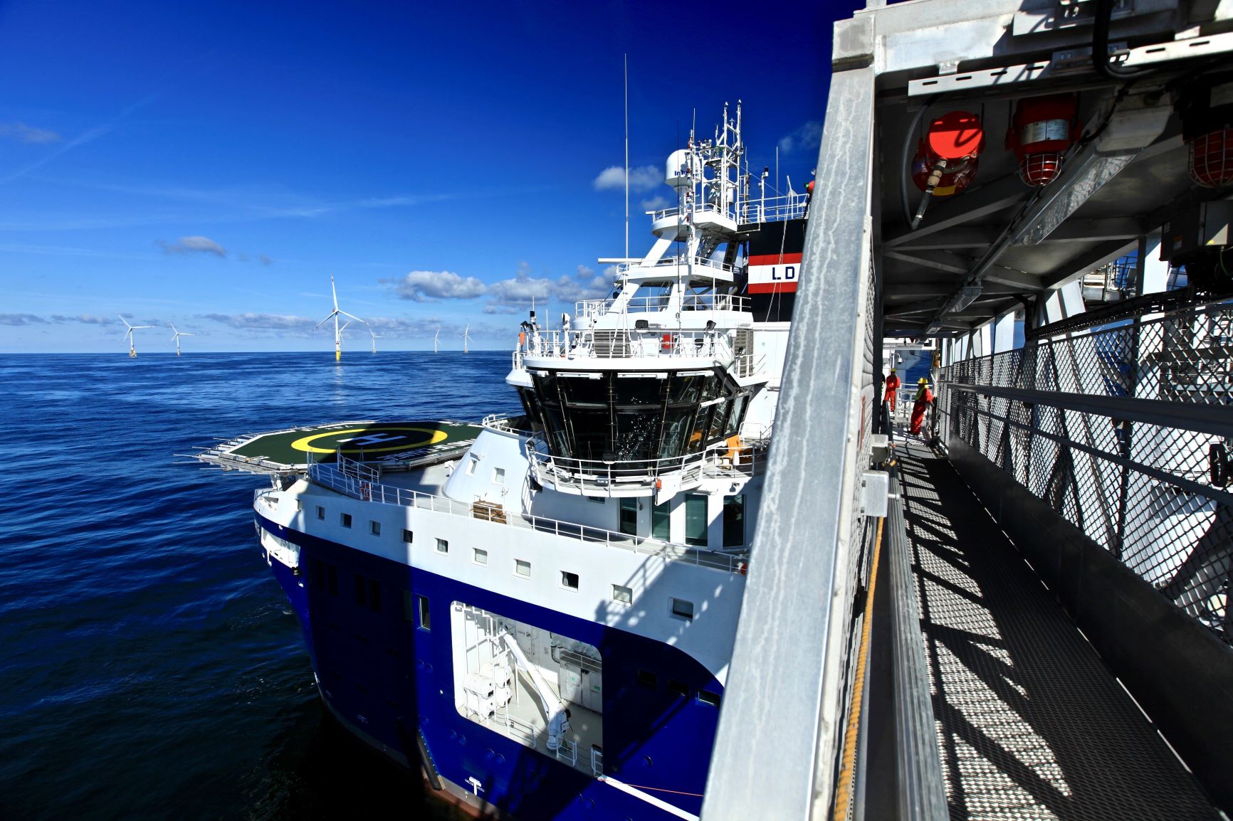 La photo a été prise en juin dernier par notre collègue officier lieutenant depuis la passerelle à compensation de mouvements (« Motion Compensated Gangway ») de notre navire de service, le Wind of Change qui opère sur le parc éolien offshore de Borkum Riffgrund 2.