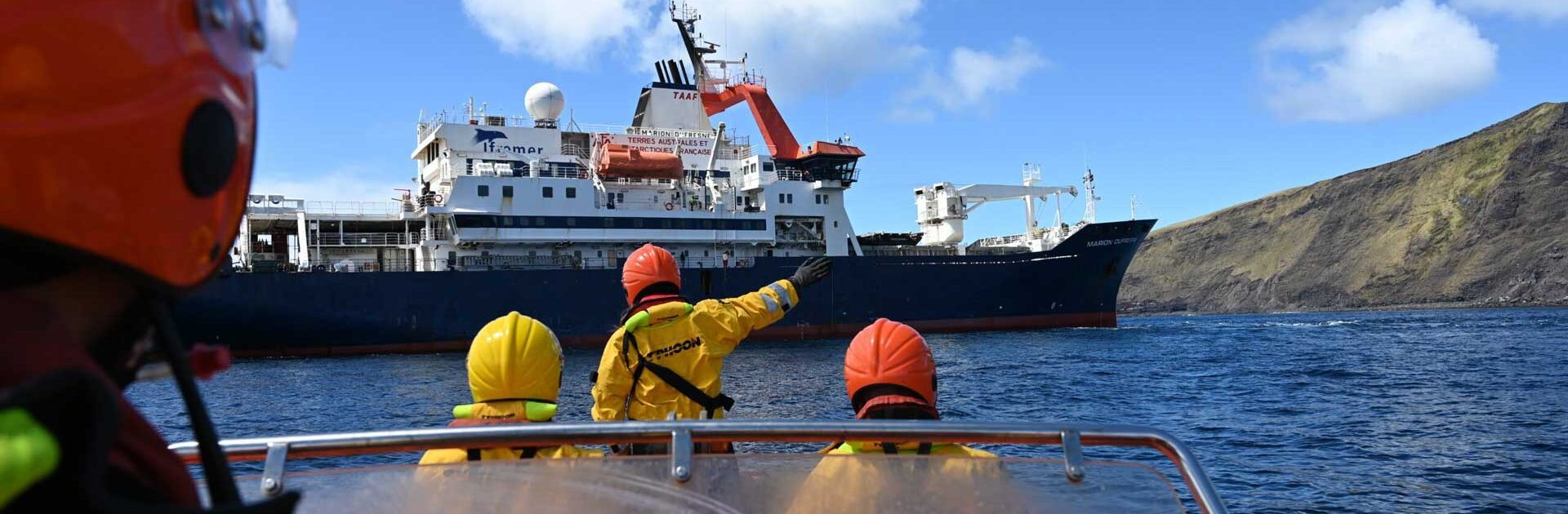 - Carry out missions four times a year from the La Reunion Port of the Southern Bases (Crozet, Kerguelen, Saint-Paul-and-Amsterdam) and periodically from the ‘Eparses’ islands – often in challenging sea conditions