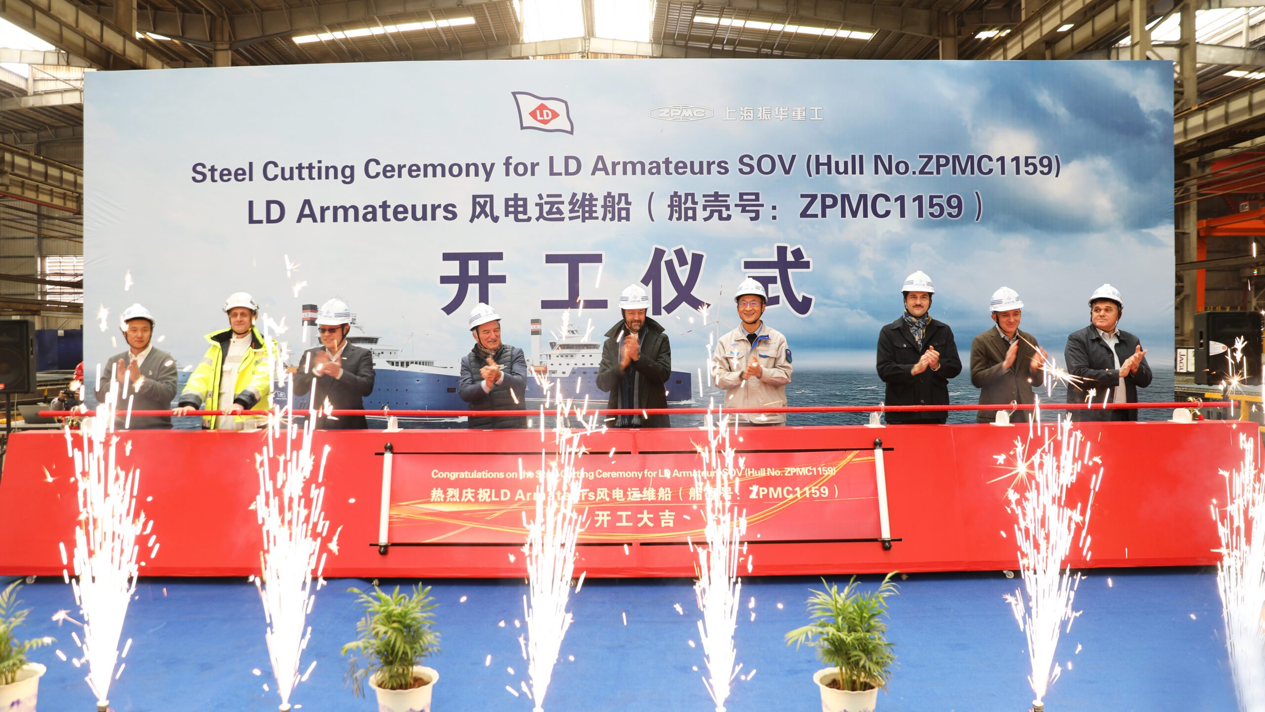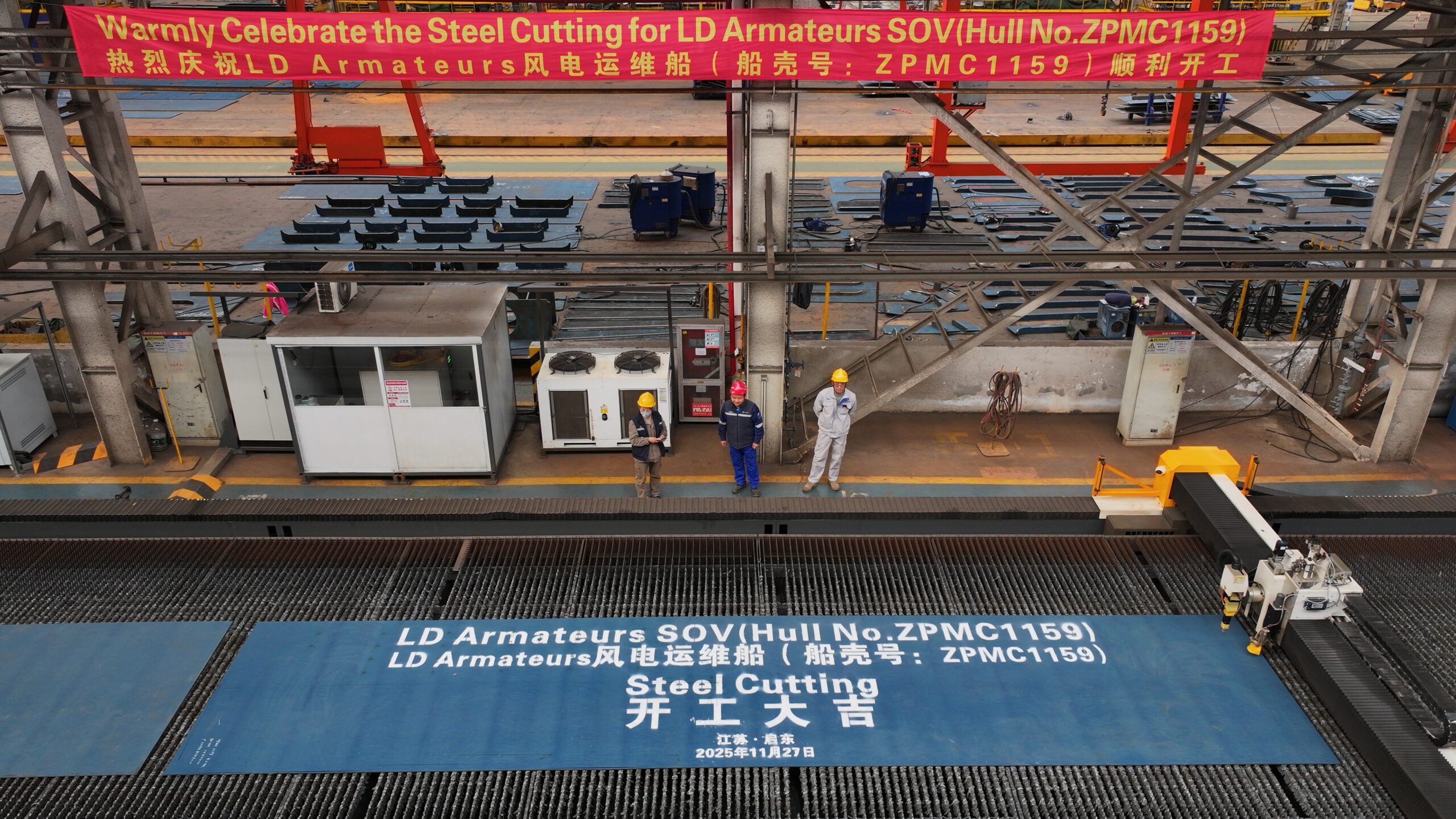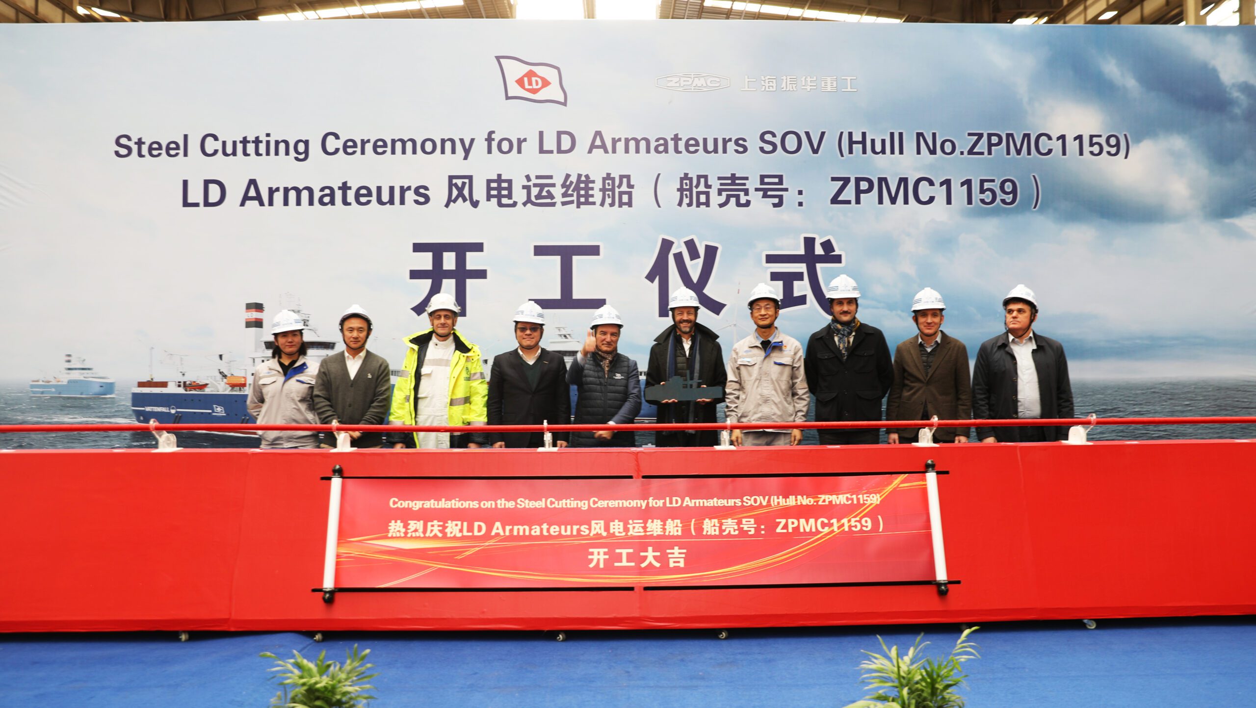 LD Armateurs est fier d’annoncer que la cérémonie de découpe de la première tôle pour le premier des deux Service Operation Vessels (SOVs) commandés par Vattenfall a eu lieu le 27 novembre. Cette étape marque le lancement officiel de la construction chez ZPMC (Shanghai Zhenhua Heavy Industries Company Limited), un chantier naval mondialement reconnu pour son expertise dans les conceptions sur mesure et en pleine expansion dans le secteur des navires offshore.